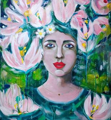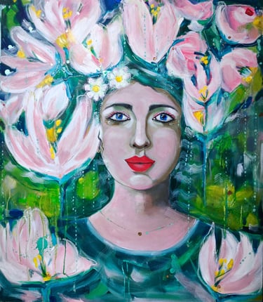 It was from this inner space of new awareness that my art found a new and powerful voice. Almost suddenly, my creativity began to flow towards subjects and colour palettes that were previously absent from my work: women with faces that are landscapes of the soul and flowers in full bloom.